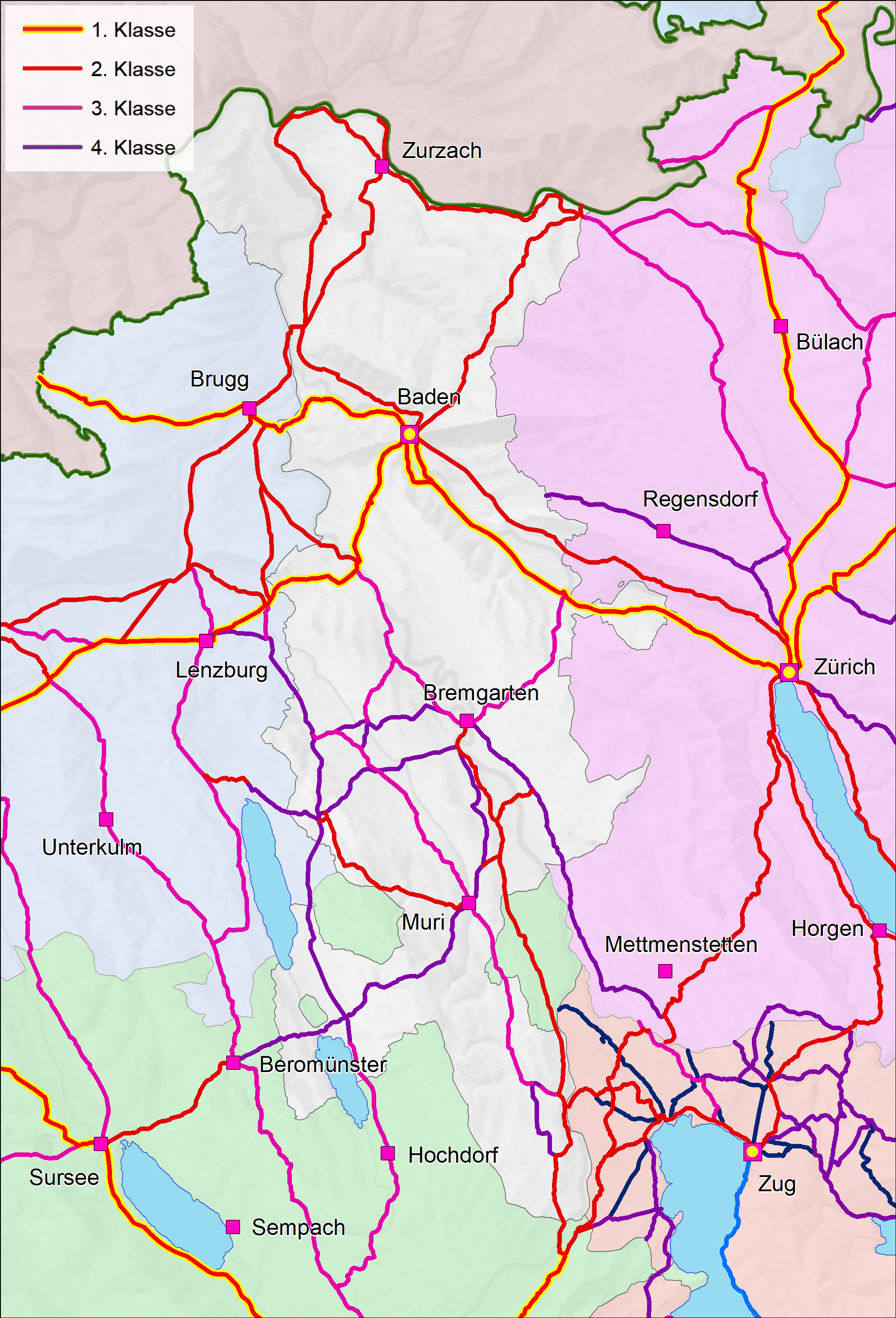 Das Strassennetz des Kantons Baden gemäss Klassifikation von Ende 1800