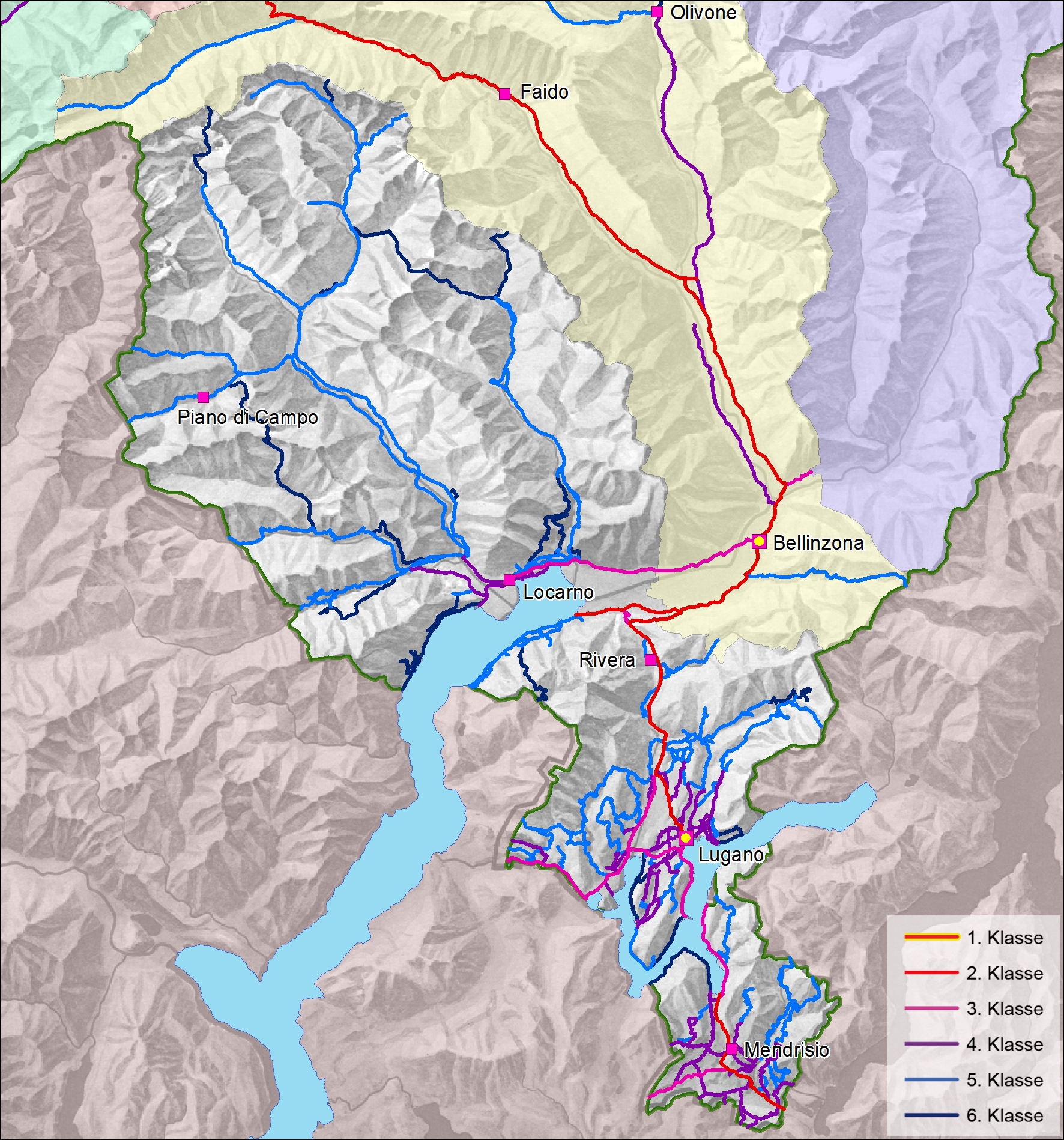 Bei der Klassifikation der Verwaltungskammer des Kantons Lugano handelte es sich um die umfangreichste Zusammenstellung überhaupt. Die Liste enthält 3 zweitklassige, 7 drittklassige, 56 viertklassige Strassen sowie 92 Saum- und 29 Fusswege.